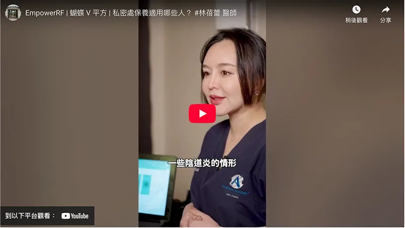 - 延伸提供婦科醫美療程選擇,如陰道雷射、新一代蝴蝶電波等非侵入式療程,同步結合再生醫學外泌體療法,協助改善陰道乾澀、鬆弛與敏感度下降,從內在重建私密健康,重拾舒適與自信